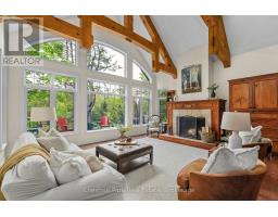 Where Stories Begin and Memories Stay: A Family Riverfront Retreat on the Black River Own it solo or share it with family or friends the magic of Muskoka is best when experienced together.Nestled along 405 feet of private shoreline with breathtaking westerly sunsets, just outside Bracebridge, this exceptional property offers not one, but two distinct dwellings, making it the perfect setting for multi-generational living, shared ownership, or a timeless family getaway.The main year-round residence, built in 2005, welcomes you with a warm timber framed accents design and soaring windows that flood the space with natural light and frame the beauty of the river beyond. Its open-concept layout is both bright and inviting, with a main floor primary suite, three additional bedrooms upstairs, and two dens below. A stunning stone fireplace anchors the living space, while a Muskoka room extends your living area into the trees perfect for relaxing to the sounds of the forest or gathering for evening games and laughter. The lower level also features a large games room, a formal living room, and walkout access that keeps you effortlessly connected to the outdoors. Steps away, the 1974 log cabin stands as a testament to decades of family joy. Lovingly preserved, it offers three generous bedrooms, a 3-piece bath, its own Muskoka room, and a storybook setting right at the rivers edge. Here, children catch frogs by day and roast marshmallows by the campfire under the stars by night. The walls echo with laughter, and the beams hold generations of memories. With no other structures in sight, this is your own hidden paradise where peace, privacy, and natural beauty converge. Whether you're seeking a peaceful year-round home, a multi-generational compound, or an investment in connection and nature, this property delivers the lifestyle only Muskoka can provide. Don't miss your chance to make Muskoka HOME! (id:35360)