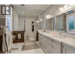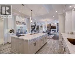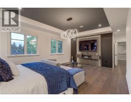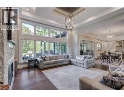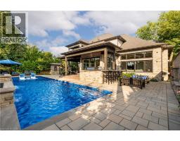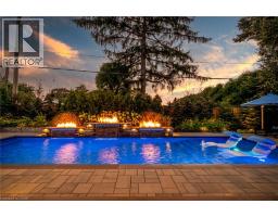 This architectural masterpiece offers 7,000 sq. ft. of luxurious living space with 4+2 bedrooms, 6 bathrooms, an incredible resort-style backyard oasis, and a fully finished basement with separate entrance. Set on an 85 x 135 ft. lot in a mature Ancaster neighbourhood, just one minute to highway access and all Power Centre amenities, this dream home impresses with striking curb appeal, professional landscaping, and an oversized triple garage with 14 ft. ceilings and two car lifts. The grand foyer with a soaring 21 ft. ceiling and curved staircase opens to a sophisticated interior featuring bold millwork, expansive porcelain, and wide-plank hardwood all illuminated by massive windows allowing plenty of natural light. The main level boasts formal living and dining rooms with 12 ft. ceilings, a private office, powder room, mudroom, and a gourmet eat-in kitchen with top-tier appliances. A 4-season sunroom with radiant in-floor heating and a family room with 11 ft. ceiling and stone fireplace create the perfect entertaining spaces. Upstairs, the sensational primary suite includes custom built-ins, spa-inspired 5-piece bath, private balcony, walk-in closet, and a custom dressing room fit for any wardrobe. Three additional bedrooms, all with ensuite baths (heated floors), and bedroom level laundry complete the upper level. The finished lower level offers a recreation area, home theatre, 2 bedrooms, full bath, second laundry, and kitchenette—ideal for family enjoyment or a multigenerational in-law suite. Step outside to a private resort-style retreat with heated saltwater pool (waterfalls, lights, fire features), sunken hot tub, outdoor kitchen with pizza oven, extensive hardscaping, artificial turf, storage shed, and an elite K-Array sound system. Upgrades include Control4 automation, integrated security with cameras, whole-home sound, and dual furnaces, A/Cs, and HRVs for comfort and efficiency. A rare opportunity to own one of Ancaster’s most extraordinary residences! (id:35360)