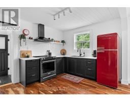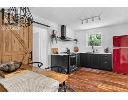 Welcome to 1011 United Church Rd, a charming 984 sq.ft., 2-bedroom, 1-bath home that beautifully blends modern comfort with rustic warmth, just steps from Lake Joseph and The Cove Marina. A welcoming foyer leads to a spacious, open-plan living area, perfect for entertaining. The modern kitchen is a dream, featuring a high-end stainless-steel range, a retro fridge, and a custom backsplash. Throughout the home, rich acacia hardwood floors, contemporary windows, and interior shiplap create a cozy atmosphere, complemented by a gorgeous bathroom updated in 2021 with a luxurious rain shower. You can also enjoy the outdoors from the inviting 3-season Muskoka room, which offers stunning views of the surrounding woods and granite outcroppings. The backyard is a private oasis, ideal for relaxing in the hot tub (2022) or gathering around the fire pit and barbecue area. The property is equipped for year-round living with baseboard heaters and smart thermostats, which, along with an electronic keypad lock, allow for remote monitoring of heat and access, providing peace of mind. Additional updates include the electrical system and roof shingles, both from 2020. This home is ideally situated across the road from The Cove Marina for easy boat access to Lake Joseph and is just minutes away from fine dining, shopping, golf, and spas. This home is best seen to be fully appreciated! (id:35360)