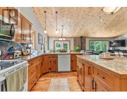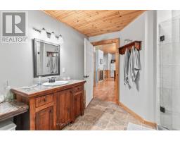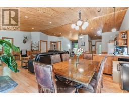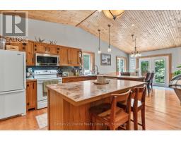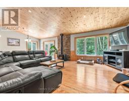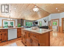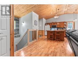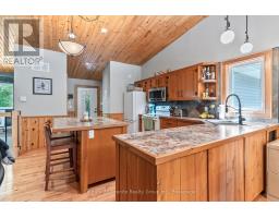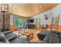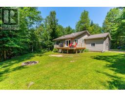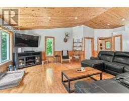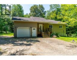 Sitting on a private, level, 1 acre lot, this 2 bdrm+den/2 bath bungalow is ready for your new memories. Inside, a large open-concept living/dining/kitchen features pine cathedral ceilings and a woodstove, accented by a stone wall and slate floors. A primary bedroom, stunning 3 piece bath and laundry closet on this level, gives you the option of one-level living. Downstairs, the family room has large windows, bringing in the daylight and has a pellet stove to cozy up to. The luxurious 4 pce bath on this level has in-floor heating to keep the toes toasty, double sinks and a freestanding tub to soak away your worries. Another bedroom and den (currently being used as extra sleeping space) will house your guests/family. The utility room houses the forced air propane furnace, with a/c, water uv and filtration system, hardwired generator panel and roughed-in central vac. An attached garage, covered porch, deck off the dining area and firepit complete this beautiful package! Enjoy everything this area features; restaurants in Carnarvon and West Guilford, hiking trails, beaches, parks, boat launches, ski hill and more. Minden and Haliburton are a short drive away for additional recreation and shopping needs. (id:35360)