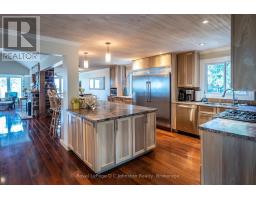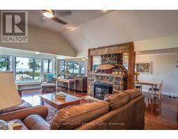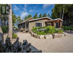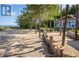 Dream Beachfront Retreat in Port Elgin. This is an unparalleled opportunity to own a piece of Saugeen Beach Road's coveted shoreline, nestled in the trees along the enclave known locally as Eidt's Grove. This property boasts a generous 111 foot frontage of sandy Lake Huron shoreline, offering spectacular panoramic views and sunsets. The large, private lot is a natural oasis, featuring a charming babbling stream that meanders through the property. The fully renovated 1,800 square foot year-round home or vacation hideaway (fully updated in 2010) is designed for comfort and style. Inside, the home is anchored by a rustic stone fireplace in the main living area, complemented by engineered hickory wood floors and a bright, functional kitchen featuring whitewashed poplar cabinetry, a large island, and stainless steel appliances. With three bedrooms, a large entrance foyer, and a main-floor laundry room, this home is as practical as it is beautiful. Step outside to exceptional outdoor living spaces, including stunning exposed aggregate concrete walkways and patios that lead directly to the white sand beach. The property is complete with an oversized, detached 24 x 30 foot insulated garage/workshop, a woodshed, a 7 x 11 foot bunkie, and a refreshing outdoor shower, making this a truly turn-key lakefront gem. (id:35360)