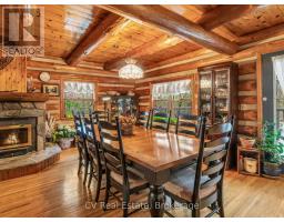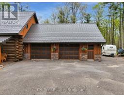 Welcome to a standout Muskoka log home that delivers privacy, craftsmanship, and lifestyle in equal measure. Set at the end of a quiet road on just under 1.5 acres, this property offers a peaceful, well-treed setting with the kind of seclusion buyers are looking for. This custom-built, round log home has been meticulously cared for and spans three fully finished levels. Inside, the character is immediate. Warm wood tones, exposed log construction, and a striking stone wood-burning fireplace anchor the main living space. The layout flows naturally out to a spacious back deck, creating an ideal setup for entertaining or quiet evenings outdoors. The home features three bedrooms, with all levels serviced by well-sized bathrooms for convenience and functionality. Upstairs offers comfortable sleeping quarters, while the fully finished walkout lower level adds valuable living space with a rec room, home office, and direct access to the backyard. The exterior is equally well equipped with a double-car garage, a large paved driveway, and two additional storage sheds, giving you ample space for tools, equipment, and recreational gear. A steel roof installed in 2015 adds long-term durability and peace of mind. Location here is a key advantage. You are just minutes from public access to Kahshe Lake, known for its clean, clear water and excellent boating, swimming, and fishing. Gravenhurst is only 10minutes away for shopping, dining, and everyday amenities, with easy access to Lake Muskoka for extended boating. An added bonus is the RV septic hookup right off the driveway, making it easy to host guests or accommodate additional trailers. This is a complete package for buyers who appreciate the authenticity of a true log home, combined with privacy, usability, and proximity to some of Muskoka's best lakes. (id:35360)