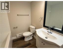 Upgraded Living on the Mountain Brow! This completely renovated lower-level suite offers the perfect blend of modern sophistication and Escarpment charm. Nestled in a sought-after neighbourhood among mature trees and scenic trails, you will be impressed the moment you step inside. The heart of this home is the stunning open-concept kitchen, featuring a sleek contemporary design with crisp white cabinetry, a classic subway tile backsplash, and premium stainless steel appliances. Large egress windows flood the space with natural light, making the unit feel bright and spacious. The living area is tastefully finished with durable vinyl plank flooring and an abundance of pot lights for a warm, modern glow. The generous primary bedroom offers a quiet retreat, while the 4-piece bathroom features a modern vanity, toilet, and tub/shower combo ready for your personal touch. Convenience is key with an in-suite stackable Bosch washer and dryer, and year-round comfort is guaranteed with a ductless heating and cooling system allowing for room-specific temperature control. Located just minutes from the Linc and 403, you are steps away from the Chedoke Radial Trail and the panoramic views of Sam Lawrence Park. Experience the best of Hamilton living with top-tier dining like Bon Temps and Vintage Coffee Roasters just a short drive away. Turn-key, stylish, and situated in a prime location—this one won’t last! Property is professionally managed and property manager does all screening. Rent is plus utilities and HWT (40%). Property maintenance agreement also required from manager for grass/snow split with upper that makes rent $1795. (id:35360)