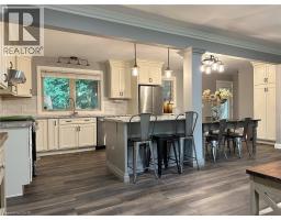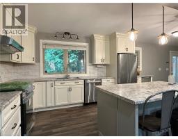 Discover this updated home nestled at the edge of town, offering a peaceful retreat while remaining close to schools, shopping, and recreational facilities. Set on a large corner lot, this residence boasts 3 bedrooms and 2 baths along with a lower-level family room that provides extra living space. Stylish updates throughout include an open concept living area with new vinyl plank flooring (2024) plus a large picture window that floods the space with natural light. The updated kitchen boasts never-used stainless steel appliances (including a wine cooler), custom lighting, pantry with pull out shelving, plus a generous island - perfect for large gatherings. The lower level offers a family room with 2 large windows (2' x 5'), an additional bathroom, laundry and crawl space storage. Outside, enjoy beautifully landscaped grounds with perennials, hydrangeas, ground cover and mature trees. Private backyard complete with gas BBQ, a stone patio and fire pit, ideal for family fun and relaxing evenings. The 24' x 12' drive through garage has bay doors at each end and convenient driveway access from two streets, with a level driveway at the rear of the home for level access into the home via the backyard entrance. Recent updates include plumbing, air conditioning (2022) and an on-demand hot water heater (2023), and professionally installed R50 insulation and venting in the attic. Great house in a great location...don't miss this one! (id:35360)