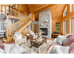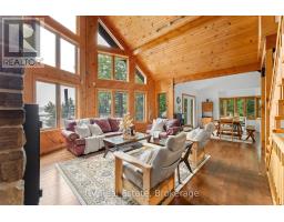 Tucked into a peaceful, tree-lined setting with stunning southern views over Lake of Bays, this charming 4-bedroom, 3-bath Viceroy-style home or cottage offers over 2,750 sq.ft. of thoughtfully updated living space. Inside, soaring ceilings and wall-to-wall windows invite the outdoors in, while a reimagined kitchen, warm wood accents, and a striking stone fireplace create a welcoming atmosphere year-round. The main level includes two comfortable bedrooms, a full bath, and a spacious laundry room, while the upper loft-style suite offers lake views, a walk-in closet, a private ensuite, and access to a brand new balcony deck the perfect spot for morning coffee. Downstairs, the walkout level features a granite-tiled rec room with a woodstove perfect for cozy evenings after a day on the trails around Lake of Bays or the lake. This home is as functional as it is beautiful, with a number of recent upgrades that add peace of mind: a new septic pump and line, a new well pump, air conditioning, and the finalized purchase of the Shore Road Allowance and survey. Outside, enjoy a brand-new crib dock and floating dock that enhance your private sand waterfront experience just across the cottage road. A rebuilt triple garage offers abundant space for vehicles, recreational gear, or a workshop setup. Whether you're searching for a weekend escape or a full-time lakeside lifestyle, this property is an opportunity on one of Muskoka's most desirable lakes. Book your private tour today and start your next chapter at the lake. (id:35360)