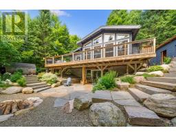 A peaceful year round retreat on a privately maintained road just 15 minutes from Dorset. This quiet, low traffic setting is ideal for walking, biking, and safe enjoyment by children and pets. The property offers exceptional privacy, with lake views across to Crown land and direct access to a 31+ acre private park-the Wolf Sanctuary-jointly owned by surrounding cottage owners. Ownership shares transfer with the property, providing wooded trails for walking and snowshoeing. Wolf Inlet remains calm even when the main lake is windy, making it perfect for paddling, swimming, and relaxed waterfront living. The cottage/home is bright and inviting, surrounded by mature trees that create a natural, sheltered feel. The main level features an open concept layout with two bedrooms, a full bath, and a spacious sunroom that can serve as additional dining or lounging space. The lower level primary bedroom offers excellent privacy and walkout access to the gardens and lake. The landscaped areas blend seamlessly with the natural tree cover, maintaining strong privacy throughout the property. A large double garage includes a workshop, fitness area, and a loft currently used as a private office-ideal for remote work. Mechanical systems are solid, with a drilled well, forced air propane furnace, airtight woodstove, gas fireplace in the primary bedroom, and a fully automatic 17 kW Generac generator. At the shoreline, enjoy quality docking with both shallow entry and deeper water for secure boat mooring. A rare combination of privacy, community, and year round comfort on beautiful Kawagama Lake. (id:35360)