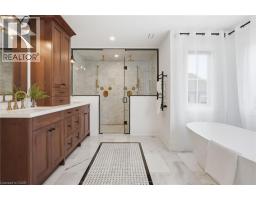 Welcome to 136 Rockcliffe Road. A custom-built showpiece completed in 2021, offering over 4,000 square feet of above-grade finished living space on an exceptional 100 x 200 ft lot. Tucked on a quiet, coveted street in the Waterdown community, this is where refined luxury meets elevated lifestyle. The curb appeal is undeniable. A striking façade, manicured grounds and a rare three-car garage set the tone before you even step inside. Designed with intention and built for modern family living, this home delivers four spacious bedrooms, refined principal rooms and elevated finishes throughout. At the centre of it all, an exceptional executive kitchen. Outfitted with premium appliances, two oversized islands and a walk-in pantry that truly delivers. It is equal parts functional and beautiful, built for everyday living and effortless entertaining. A private main floor office overlooks the backyard, offering a quiet, inspiring work-from-home space. Upstairs, the primary retreat feels like a boutique hotel suite. A cozy sitting area with gas fireplace, dual walk-in closets, a dedicated dressing room and a stunning six-piece ensuite designed for complete relaxation. Three additional bedrooms are generously sized and thoughtfully laid out. The finished lower level extends the living space with a full three-piece bathroom and an oversized walk-in shower. Perfect for guests, a recreation zone or multi-generational living. Seamless indoor-outdoor flow and expansive principal rooms make this home as functional as it is beautiful. Just steps to the Bruce Trail, you are surrounded by nature without compromising on convenience. A rare offering. Nearly new. Exceptionally built. Exactly where you want to be. Don’t be TOO LATE*! *REG TM. RSA. (id:35360)