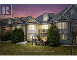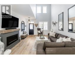 $444.43 MonthlyMaintenance-free living in a sought-after golf course community. A covered front porch welcomes you into the main floor, featuring engineered hardwood flooring, high ceilings, and a bright, open-concept layout with a living room centered around a fireplace. The kitchen offers granite countertops, stainless steel appliances, a skylight for added natural light, and a walkout to a private deck overlooking green space.The main floor primary bedroom includes a walk-in closet and a 4-piece ensuite with custom shower. The second level features a loft-style space suitable for a home office or additional living area, along with a spacious bedroom and a 4-piece bathroom. The finished walkout basement provides additional living space with a rec room, games room, bedroom, full bathroom, and access to the backyard.Additional features include an owned reverse osmosis system, and inside entry from the garage. Low-maintenance living with exterior maintenance(roof, windows) snow plowing, grass cutting, landscaping and common elements included. Located in a desirable community close to golf, trails, and local amenities, plus exciting growth in the area including a new high school, the twin-pad arena, and a modern library and event space bringing even more convenience and community life to Wasaga Beach. (id:35360)