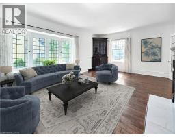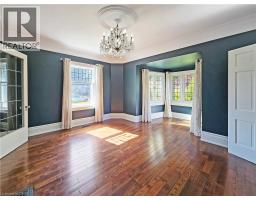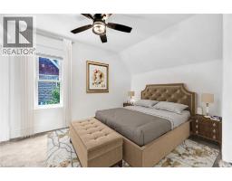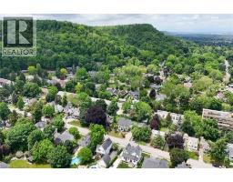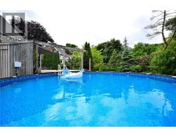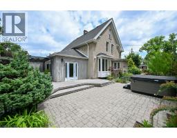STATELY 2 1/2 STORY GEORGIAN STYLE DESIGNATED HISTORICAL HOME. Built in 1905, known as the Helen Gibson House. Located on large property in the heart of the downtown core on quiet tree-lined street below the escarpment among other character homes. Beautifully updated throughout! The front of this home is graced by the impressive neo-classical vaulted portico with pillars. Spacious foyer opens to large family room with newly installed wood burning fireplace insert in 2023 and oversized leaded glass bay window to bring in the light. Formal dining room with leaded glass windows overlooking the gardens. New kitchen installed in 2023. Main floor laundry, 2PC bath, main floor den/office with wall-to-wall bookcases. Double sliding doors lead to deck, patios & backyard oasis complete with pool & gazebo. Open staircase to upper-level leads to primary bedroom with walk-in closet & ensuite bath. Two additional bedrooms & bath. Second staircase leads to attic (764 square foot space) great potential to create extra living space. OTHER FEATURES INCLUDE: hardwood floors, new roof shingles 2018, new above ground pool 2024, new hot tub 2024, stainless steel appliances in kitchen, washer/dryer, 2 1/2 baths, 200 amp service. Heat pump, A/C & new on-demand water heater (owned) 2023. Long interlock double driveway (fits 4 cars), EV charger, walkway & patios. Two garden sheds. Perfectly situated a block from the downtown core and a short stroll to the Bruce trail & park. This heritage home is surrounded by its award-winning gardens. Calling all historians: It will take only one visit for you to fall in love with this rare offering! (id:35360)