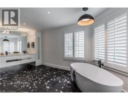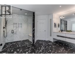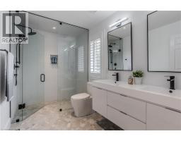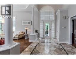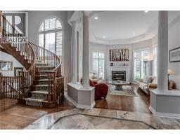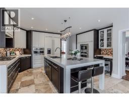Welcome to this exceptional residence on a quiet court in the prestigious Tyandaga Highlands community. Set on a rare corner lot, this fully renovated home offers 6039sf of living space, ideal for large or multigenerational families seeking luxury, privacy, and functionality. Upon arrival, the curb appeal is striking—an elegant brick and stone façade, landscaped grounds with stone retaining walls, and a 9-car concrete driveway, plus a rare triple car garage. A grand archway entrance and spiral staircase set the tone for the upscale finishes found throughout. Step inside to a bright, open-concept layout designed for everyday luxury. Hardwood floors and California shutters run throughout, complemented by refined details including tray ceilings, wainscotting, and crown moulding. The formal living room is flooded with light from 4 large windows and features a gas fireplace. The spacious dining room is ideal for hosting, while the show-stopping kitchen offers quartz countertops, island with seating for 5, built-in appliances, dual wall ovens, and a sun-lit breakfast nook with access to the back deck. A family room with gas fireplace and a home office complete the main level. Upstairs, the primary suite feels like a retreat, complete with a large walk-in closet, a spa-inspired ensuite with a freestanding tub, oversized glass shower w/ bench, and dual sink vanity. 2 additional bedrooms share a modern 4pc bathroom. A separate upper-level wing, accessible through a 2nd staircase, offers a private bedroom with 2 walk-in closets, sitting room, and ensuite bath—perfect for in-laws, teens, or a live-in nanny. The fully finished basement with separate entrance includes a rec room w/ fireplace, full kitchen w/ heated floors, bedroom, and 2 3pc bathrooms (one with heated floors)—an ideal secondary living space. Outside, enjoy a pool-sized yard with elevated deck, large patio with pergola, and ample green space for kids and pets. This home is truly one-of-a-kind, don’t miss out! (id:35360)