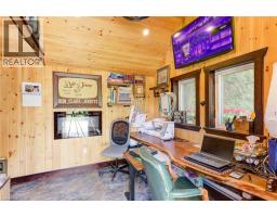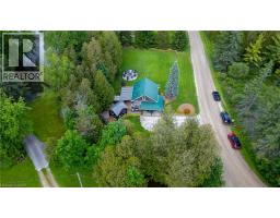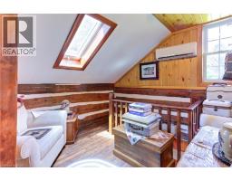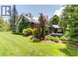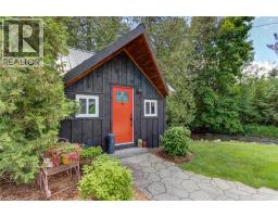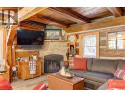 Discover the charm of this stunning century-old log cabin, beautifully set on a peaceful creekside lot. Thoughtfully renovated to blend rustic character with modern comfort, this one-of-a-kind retreat offers a warm and inviting lifestyle. The heart of the home features a custom cherry kitchen with leathered granite countertops, a live-edge wood counter in the butler’s pantry, and premium Bosch appliances (2023). Heated floors in the kitchen prep area and bathroom provide everyday luxury, while the propane fireplace (serviced May 2024) creates cozy ambiance year-round. A versatile bunkie/guest house/home office, complete with its own electric fireplace and keyless entry, expands your living or work-from-home options. Step outside to enjoy the custom timber-frame pavilion with industrial-grade heat, retractable screens, and LED lighting—perfect for entertaining or relaxing by the creek. Practical upgrades include a new water heater, pump, and water softener (2022), with the septic pumped in June 2023. The professionally landscaped 0.37-acre property features a retractable awning, dusk-to-dawn driveway lighting, and propane BBQ hook-up. With 103 ft of frontage and serene creek views, this remarkable property offers the perfect balance of character, comfort, and natural beauty. A truly rare opportunity to make a log cabin retreat your year-round home. (id:35360)