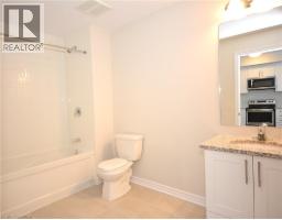 Like New, contemporary designed 1 bedroom 1 bath condo in North Oakville! Great location, within walking distance to stores, restaurants, schools and parks. Close to highways and the GO station! The modern kitchen features granite countertops, stylish white cabinetry, backsplash, breakfast bar and stainless steel appliances. Laminate flooring throughout. Bright open concept living/dining room with access to the 64 sq.ft. balcony. Bedroom with large window, well-appointed spacious 4-piece bath and convenient ensuite laundry. 1 underground parking space & storage locker. The Cosmopolitan model built by Ballantry Homes. Move-in & enjoy! Unit will be freshly painted before occupancy. (id:35360)