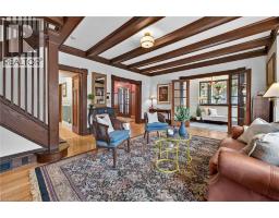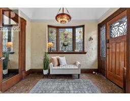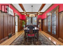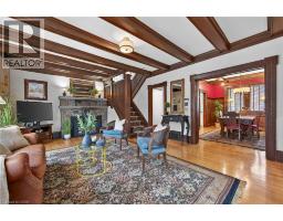 Old world charm & character 2 story 3 bedroom home in desired Hamilton central location. Unique Victorian foyer, warm and inviting huge living room with fireplace and beautiful beamed wood ceiling and dramatic staircase. Amazing formal dining room with character featuring detailed hardwood wainscoting with plate rails, beam wood ceiling, pocket doors, and french doors leading to a private cover porch. Kitchen with walk-in pantry, spacious 3 bedrooms updated bath with the laundry facility, basement is fully finished with kitchen, four piece bath, and bedroom with a separate entrance. Private front concrete driveway, Single car garage and fenced yard with shed. Steps from public transit, minutes walk to Gage Park. (id:35360)