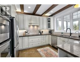 $265.67 MonthlyLocated on one of the most coveted streets in the Lora Bay community, Welcome to East Ridge Drive. Meandering through the east side of the neighbourhood, this quiet, tree-lined street is framed by mature gardens, parkettes, and direct access to the Bruce Trail. Residents enjoy Lora Bay's exceptional amenities, including a championship golf course, private beach on Georgian Bay, state-of-the-art fitness facility, clubhouse, and an active social calendar. This custom home sits on one of the finest lots on East Ridge, offering remarkable privacy while capturing expansive views of both the golf course and Georgian Bay. The professionally landscaped outdoor space features mature trees and gardens, open green space, and swoon-worthy views that change beautifully with the seasons. Inside, the heart of the home is the stunning great room, highlighted by wood beams, a floor-to-ceiling stone fireplace, and a wall of windows designed to showcase the breathtaking scenery East Ridge is known for. A Muskoka room seamlessly extends your living space, allowing you to enjoy the outdoors through every season. The kitchen offers ample storage and prep space for the chef, complete with bar seating for three, while the dining room seats eight or more-ideal for entertaining. The romantic primary suite features serene outdoor views, a five-piece ensuite, and a walk-in closet. A full bathroom, sun-soaked office, and mudroom/laundry complete the main level. Upstairs, two generous bedrooms share a four-piece bath, perfect for guests. The fully finished lower level offers a welcoming rec room, two additional bedrooms, and a three-piece bathroom-ideal for family and entertaining. Plenty of storage is found throughout, including an attached two-car garage with inside access. Updates include a new roof (2025), furnace w heat pump (2024), exterior painting (2024), EV Charger & new hardwood flooring. This is an exceptional opportunity to live the Lora Bay lifestyle from a truly spectacular home. (id:35360)