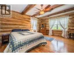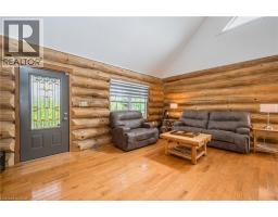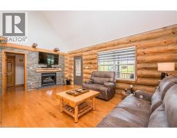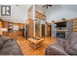 Stunning custom-designed and built white pine log home in the heart of Southampton. This four-season retreat combines natural charm with modern comfort, centrally located close to schools, shopping, golf, and the beach — just minutes from Lake Huron’s world-famous sunsets. The property includes an impressive 930 sq. ft. detached garage, perfect for a workshop, RV (with RV outlet), classic car storage, or a home-based business. Inside, enjoy the warmth of a two-sided gas fireplace shared between the chalet-style living room with soaring ceilings and the main-floor primary bedroom, which features a walk-in closet, ensuite privilege with jacuzzi tub, and laundry area. The kitchen offers ample cabinetry, an island with breakfast bar, and a seamless flow to the dining area with walkout to a covered porch and natural gas BBQ hookup. The upper loft provides spectacular sunset views and star gazing and includes two sleeping areas (one currently used as a family room) and a full bathroom, offering privacy for family or guests. The partially finished basement features drywall, a cold room, and a rough-in for a bathroom, ready for your finishing touches. Outside, enjoy a large, partly fenced backyard with raised garden beds, landscaping with pond, sandy area, firepit, garden shed, and ample parking. Whether you enjoy hiking, biking, swimming, boating, fishing, golfing, skiing, or gardening, this home places you at the center of it all. A rare opportunity to own a truly unique property in one of Ontario’s most desirable communities. (id:35360)