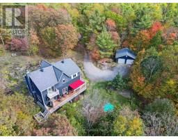 3-BDRM + DEN, 2.5 BATH, 1823 SQFT HOME ON 10 ACRES WITH DOUBLE GARAGE, JUST 6 MINUTES FROM IN-TOWN BRACEBRIDGE PLUS COLLECT OVER $220,000 IN PASSIVE INCOME OVER THE NEXT 15+ YEARS! Step through the covered front veranda into the foyer, complete with double closets. The main floor den provides a flexible space that can easily be adapted into an office, playroom, or an additional bedroom. The expansive living and dining area is bathed in natural light, featuring a wood-burning fireplace and direct access to the wrap-around deck. The eat-in kitchen includes a peninsula with a breakfast bar. A laundry closet and a side-entrance mudroom with a two-piece bathroom add to the home's practicality. The second floor features a large primary bedroom suite with a walk-in closet, a five-piece ensuite with a jetted tub, and a private balcony. Two more bedrooms and a spacious four-piece bathroom complete this level. The property sits on 10-acres of unique landscape of rock outcrops and mature forest, providing exceptional privacy and trails to explore. A detached, 23 x 23 double garage with a concrete floor and hydro can serve as a great workshop. The basement, with its exterior access under the deck, is perfect for storage and houses the home's utilities. This home is conveniently located just six minutes from the shops, restaurants, and entertainment in Bracebridge. It's also only 3-minutes from a Lake Muskoka marina and 1-minute from The Fairways at Kirrie Glen. * * * BONUS * * * Collect over $220,000 in passive income over the next 15 years! Bell Mobility leases a small part of the property for a cell tower and pays over $1000-$1300 each month. The tower can not be seen from the house. The property is still yours to enjoy as you desire. (id:35360)