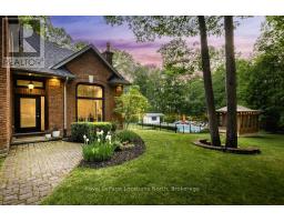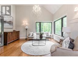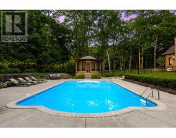 A Rare Offering in One of the Area's Most Prestigious Estate Neighbourhoods. Tucked away in an exclusive cul-de-sac, this stunning executive home sits on a secluded 1.52-acre lot, surrounded by mature 50 oak and maple trees. A winding driveway leads to a 2-storey home with 2,733 sq ft above grade + 1,500 sq ft finished basement. A true backyard oasis + personal retreat features a 20 x 40 saltwater pool '19, powered pool house, and an 18' beam gazebo, all surrounded by lush landscaping and wrought iron fencing. A hot tub and tool shed complete the fully fenced yard - ideal for relaxing or entertaining. Main Floor Elegance is evident when you enter the home showcasing vaulted ceilings, a curved staircase, and elegant wainscoting. The formal dining room has 14' ceilings, a wood-burning fireplace, and floor-to-ceiling windows. A main floor office, powder room, and open-concept kitchen with granite counters, built-ins, and a sunken family room with a wood-burning fireplace create a perfect flow. French doors lead to a large deck with scenic views. The upper level offers a refined retreat, highlighted by new hardwood flooring and a stunning hardwood staircase. The spacious primary suite offers double walk-in closets and a spa-like 5-pc ensuite with quartz, soaker tub, heated floors, and glass shower. Two more bedrooms share a newly renovated bath with quartz vanity, glass shower, and heated floors. Finished Basement '24- Bright and versatile with 10 ceilings, pot lights, wainscoting, gym, guest bedroom, and full bath with heated floors. Upgrades: Furnace' 25, A/C '19, Roof '21, Windows/Doors'22, Irrigation, Water Softener. Trail Access, minutes from golf, shops, schools, and commuter routes - this home offers the ultimate in privacy, elegance, and lifestyle. With timeless finishes, all major upgrades completed, and exceptional outdoor living, 18 Mills Circle is a rare find. Book your private showing and experience the lifestyle this exceptional estate provides. (id:35360)
