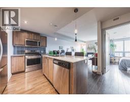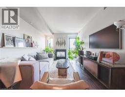$608 MonthlyWelcome to this stylish and well-appointed 1-bedroom condo in the heart of James Street North, one of Hamilton’s most vibrant and sought-after neighbourhoods. This bright, open-concept unit offers approximately 658 sq ft of thoughtfully designed living space, featuring a modern kitchen with stainless steel appliances, ample cabinetry, and a functional layout that flows seamlessly into the spacious living area with a unique two-way natural gas fireplace that connects the living room to the private balcony, creating a cozy indoor-outdoor atmosphere with beautiful city views. The bedroom is filled with natural light, complemented by a sleek 4-piece bathroom and in-suite laundry. Built in 2019, this well-managed building offers premium amenities including a rooftop terrace, party room, exercise room, and elevator access, with condo fees covering heat, water, gas, building maintenance, and more. Complete with underground parking and an owned locker, this unit is perfectly positioned just steps to Hamilton’s best restaurants, cafés, art galleries, and cultural hotspots, with easy access to Bayfront Park, the West Harbour GO Station, hospitals and major transit routes. (id:35360)