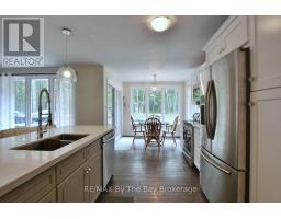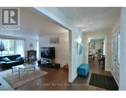 Nestled on a beautiful, well-established street in the heart of Wasaga Beach, this lovely 3-bedroom, 2-bath all brick ranch bungalow offers the perfect blend of convenience and tranquility. Set on an expansive 100-foot frontage, the property boasts a unique circular driveway that not only enhances curb appeal of the home but also provides ample parking. The large, private backyard with mature trees creates a peaceful, park-like setting to enjoy year-round. Inside the thoughtfully designed main floor features engineered hardwood, a welcoming foyer, and bright open-concept dining, and kitchen areas. The custom kitchen is equipped with stainless steel appliances, a large island ideal for entertaining, and a cozy dining nook. A picture window frames panoramic views of the backyard, flooding the space with natural light. The spacious primary bedroom includes a 3-piece ensuite and direct walkout to the deck patio, perfect for morning coffee or evening relaxation. Two additional bedrooms and a 4-piece bath complete the main level. The lower level offers a comfortable rec room and abundant storage, while the garage (mostly insulated with a gas heater) will appeal to car enthusiasts or hobbyists. Enjoy expansive main floor living all in a prime location just minutes from shopping, dining, trails, and the sandy shores of Wasaga Beach. (id:35360)