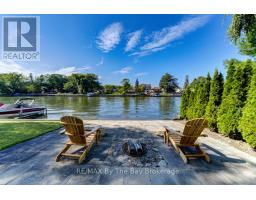 Discover this custom-built waterfront home offering 46 feet of prime frontage along the Nottawasaga River. Featuring a steel breakwall and the opportunity to install a private dock, this property provides a sheltered harbour setting with direct access to Georgian Bay, ideal for boating, fishing, kayaking, paddleboarding, and endless water adventures.With just over 2,800 sq. ft. of finished living space, this 4-bedroom, 3-bathroom home is designed for both comfort and lifestyle. The main floor showcases a bright, open living room with vaulted ceilings and hardwood floors, a large eat-in kitchen, a primary suite complete with a private ensuite and walkout to a waterside patio, second bedroom, and a second main bathroom.The fully finished lower level has been recently renovated, featuring new flooring, a spacious family room with a gas fireplace, a custom wet bar, two additional bedrooms, large bathroom, laundry and utility room, and multiple walkouts from family room and large bedroom to the lower covered patio and professionally landscaped backyard. Stone walkways, armourstone retaining walls, and tiered steps create a striking outdoor retreat leading to the rivers edge.Additional highlights include a double-car garage with inside entry, a paved driveway with parking for 4+ vehicles, and both upper and lower patios perfect for entertaining or relaxing with waterfront views.Just a short drive or boat ride to local beaches, this property blends natural beauty, modern comfort, and year-round recreational opportunities for an exceptional riverfront lifestyle. (id:35360)