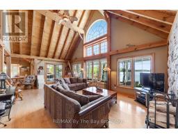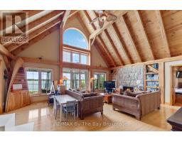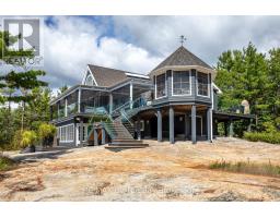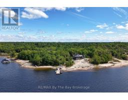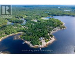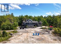This property is truly a private paradise on the clear waters of Georgian Bay, where 20 spectacular acres of trees, granite and over 1700 feet of waterfront await your arrival. This exceptional 2 1/2 storey, 5-bedroom, 4-bathroom post and beam cottage offers the perfect blend of rustic charm and modern comfort, creating an unforgettable lakeside sanctuary. Your adventure begins with a scenic 15-20 minute boat ride from Honey Harbour Marinas, delivering you to this secluded haven near the Musquash River Mouth. Enjoy the convenience of multiple docking systems and a floating double wet boathouse. The granite shore deck near the sandy beach area creates an elegant transition to the property. Landscaping combines crushed granite pathways with natural exposed rock formations creating stunning visual interest. Glass railings grace the expansive decks, providing unobstructed views and a louvered pergola system on the upper deck allows you to curate your outdoor experience. The main floor has a primary bedroom with ensuite, complemented by a convenient 2-piece bathroom and generous storage areas. The heart of the home features an open concept kitchen/dining area with spacious living room and a cozy wood-burning fireplace. A secondary sitting room provides additional gathering space for quiet moments. The walkout basement level transforms into an entertainer's dream with two additional bedrooms, bathroom facilities with separate shower, and a games room featuring its own wood-burning fireplace. The sunroom offers breathtaking water views and serves as the perfect morning coffee spot. A charming bunkie provides additional guest accommodation or serves as a peaceful retreat space. The western exposure ensures spectacular sunsets that paint the sky each evening, creating magical moments that will become treasured family memories. This remarkable waterfront estate offers the ultimate Georgian Bay experience, where natural beauty meets thoughtful design in perfect harmony. (id:35360)