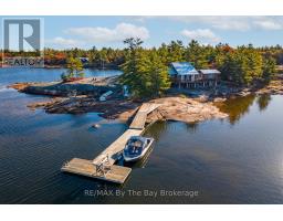 Nestled in the heart of Cognashene, lies a stunning 2-acre island in a private bay with only 3 other cottages separated by crown land. Enjoy the tranquility and stellar sunsets from an extremely well appointed 2-bedroom cottage with large loft and open concept living / kitchen. Only a few steps across the sun deck, there's a private guest cabin so family and company will have their own space. A short walk down a rocky path gets you to yet another small Bunkie for additional sleeping. A deep water dock provides sheltered mooring for a large boat and offers great swimming and fishing. This pristine and unique Island getaway has been a well loved home away from home for a wonderful local family for more than two generations, and they are leaving the place in perfect condition for a new family like yours. Access is available by boat, airboat and snowmobile from Honey Harbour. (id:35360)