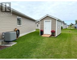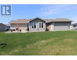 Absolutely stunning! This beautiful home offers nearly 1600 sq ft of living space and is situated on one of the largest and most private premium lots at The Bluffs! Just imagine the lifestyle, living along the shores of Lake Huron, close to shopping and fantastic golf courses along with your own private community recreation center complete with library, party rooms, sauna and indoor pool! This incredible "Cliffside B with sunroom" model has seen an extensive number of upgrades added and is an absolute pleasure to show! Features include a large custom kitchen with crown moulding, center island, pantry, upgraded appliances and quartz countertops. You will love all of the custom "pull out" shelving in the cabinets as well! The living room boasts a fireplace surrounded by wall-to-wall custom cabinetry. Also located close to the kitchen is a spacious dining room, perfect for dinner parties! The sunroom sports a cathedral ceiling and patio doors leading to a concrete patio overlooking the extensive gardens and offering a panoramic view of the countryside! Other features include a large primary bedroom with walk-in closet, 3 pc ensuite bath including a shower light and vanity with quartz countertop. Just down the hall is a spacious second bedroom and 4 pc main bath with shower/bath light, linen closet and vanity with quartz counter top. Premium window coverings and upgraded light fixtures are also prevalent throughout. Services include radiant in-floor radiant heating along with a gas furnace offering forced air heating and A/C. There's also an attached two car garage with custom shelving and separate storage shed on the property. This home is truly the ultimate in quality construction and location! (id:35360)