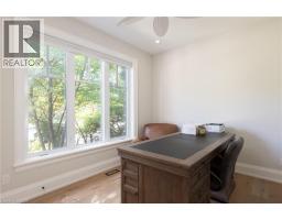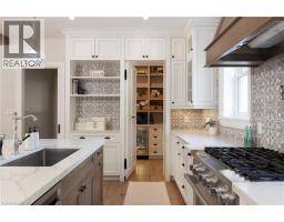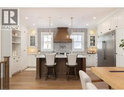 CUSTOM RENOVATION BUNGALOW. This exceptional residence is the perfect blend of modern luxury, thoughtful design, and everyday comfort. The open-concept main floor is bathed in natural light, showcasing high ceilings, wide-plank hardwood floors, and refined designer finishes throughout. The Great Room focal point is the gas fireplace and detailed surround open to the dining room area for easy entertaining. The chef’s kitchen is a true showpiece, featuring quartz countertops, a 6-burner gas range, premium stainless-steel appliances, and a cleverly concealed walk-in pantry — a seamless balance of beauty and function. The primary suite is a private retreat with a custom PAX closet system and a spa-inspired 3-piece semi-ensuite complete with a glass shower and heated floors. A second bedroom can also be used as a main floor office. From either the primary bedroom or the mudroom, step outside to a 400 sq. ft. covered porch where a fireplace and built-in TV space create a 3 season indoor-outdoor haven. The lower level offers an expansive extension of living space with a welcoming family/games room, a 4-piece bathroom, gym area, laundry room, and two additional bedrooms — perfect for guests, hobbies, or a growing family. Outdoors, the fully fenced and landscaped backyard sets the stage for effortless entertaining and relaxation. Additional highlights include 9 ft. ceilings, hardwood flooring throughout, a heated detached double-car garage with easy access to attic storage, and a whole-home integrated security system with cameras and sound system. Every detail has been carefully curated in this exquisitely designed home, offering a move-in-ready lifestyle with upgrades too numerous to list. This is a property you’ll want to experience firsthand. Located a short stroll to shops and restaurants of downtown Burlington and close proximity to highway access. (id:35360)