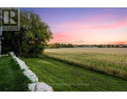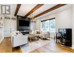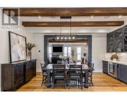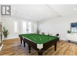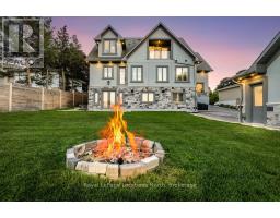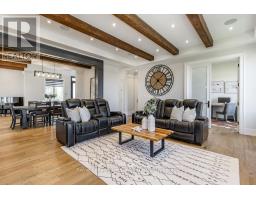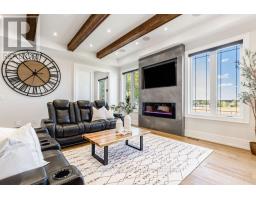 BACKS ONTO PROTECTED LAND. This stunning luxury home is situated on a quiet dead-end st, w/views of the countryside, + steps from park/rink/courts/library. This thoughtfully designed home offers an elegant, vibe, w/high end craftsmanship, featuring a stone + stucco exterior w/exceptional curb appeal. Upon entering, you are greeted by a grand entrance w/ heated porcelain tile floors, a custom wood staircase w/glass railing, + vaulted ceilings that create an inviting ambiance. The main level showcases engineered white oak flooring + exposed beam accents. The spacious living room offers custom-built cabinetry, a tiled feature wall with a built-in electric f/pl, + space for a TV. Adjacent is the elegant dining room, equipped w/ built-in cabinetry, dry bar, quartz counters, backsplash, +under-mount lighting perfect for entertaining. The family room flows directly from the dining room, offering a 2nd tiled wall w/ built-in electric f/pl, lg windows + seamless transition. The gourmet kitchen is classy, featuring an oversized island, quartz countertops, high-end s/s appliances, incl a gas range w/ a custom range hood + walk-in pantry. A private office w/views + a mud/laundry room w/heated tile floors, inside entry to garage w/ epoxy floors + w/up from basement. 25 ft ceilings impress, flowing into 2nd flr w/white oak flooring that continues throughout, leading to the luxurious primary suite. This retreat incl access to private balcony, a walk-through closet w/ built-in organizers, + 6PC ensuite w/ dbl sinks, soaker tub, + large glass shower. Two additional bedrooms each have their own 3PC bathrooms w/ tiled showers + heated floors. The basement offers versatility, featuring expansive rec room + walk-out French doors leading to the patio, providing in-law potential. This bright space offers luxury plank floor, full kitchen, 2 bedrooms, + a 3PC bathroom. Outside, enjoy an add. detached,heated 2-car garage w/ gas + water lines for future pool installation. (id:35360)