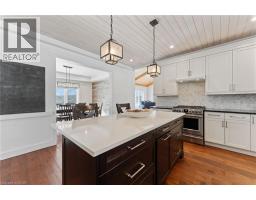 This stunning 5-bedroom, 2.5-bathroom home spans over an energy efficient 3,800+sq/ft and is perfectly positioned to overlook the breathtaking Grand River. Nestled on a generous lot overlooking rolling fields at the back and river access just across the street, it’s an ideal setting for those who love the outdoors. Adding to its appeal, a massive 100’ x 40’ detached shop provides endless possibilities for hobbies, storage, or business use (w/ high speed fibre internet). The main floor boasts a spacious and inviting layout with 9ft ceilings, featuring a custom kitchen with a wood-paneled ceiling, stone countertops, a stylish herringbone backsplash, and a large island—perfect for gathering with family and friends. The adjacent dining room, with its tray ceiling and wood accent wall, offers picturesque views of the Grand River. The oversized great room is a true showstopper, complete with a floor-to-ceiling stone fireplace, vaulted ceiling, and expansive windows that frame stunning views in every direction. Step through one of two patio doors to your private outdoor oasis, featuring a large covered patio and built-in outdoor kitchen, ideal for entertaining. On one elevated side of the home, the primary suite offers a peaceful escape with a walk-in closet and a luxurious ensuite, complete with a custom tile shower. The second level hosts four additional bedrooms and a full 4-piece bathroom. The versatile basement offers even more potential, with its own private entrance from the attached double garage, making it an excellent option for an in-law suite or additional living space. For those needing extra room for vehicles, equipment, or recreational toys, this property delivers! The huge concrete parking area and driveway ensure ample outdoor storage/parking for vehicles/trailers. Don’t miss this rare opportunity to own a spectacular home in a prime location with endless possibilities! Luxury Certified (id:35360)