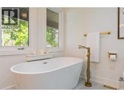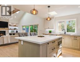 Stunning Brand-New Rebuild in Downtown Burlington Tucked away on a quiet cul-de-sac, this raised bungalow offers refined living at its best. Perfectly situated backing onto the picturesque Waterfront Trail, it’s just a short stroll to downtown Burlington, with its charming shops, restaurants, and the sparkling shores of Lake Ontario. Never been lived in, this home is ideal for downsizers or professionals seeking a luxurious, low-maintenance lifestyle where style and comfort abound. Step inside to discover a magnificent open-concept design, featuring engineered hardwood floors, pot lights, and integrated speakers throughout. The great room captivates with its cathedral, beam-accented ceiling, skylights, and a stone-framed gas fireplace flanked by illuminated custom shelving and cabinetry. Sliding doors create a seamless transition to the covered porch, wired for sound and complete with glass railings overlooking a private backyard oasis. The professionally designed kitchen is a showpiece—featuring Bosch appliances, sleek finishes, and a large island perfect for entertaining. Just off the great room, the main floor laundry is bright and functional, with ample cabinetry, heated floors, and direct access to the garage and backyard. The primary suite offers a serene retreat with a vaulted ceiling, numerous custom built-ins, and a spa-like ensuite boasting a soaker tub and heated floors. The lower level is equally impressive, with a spacious, light-filled family room featuring a walkout to the garden and custom built-ins for extra storage. Three generous bedrooms, each large enough for a king bed, share a beautiful 3-piece bath again with heated floors. Even the mechanical room has been finished with large-format tile for a polished touch. Outside, a detached garage comes EV charger–ready, completing this exceptional offering. Every detail has been thoughtfully designed and flawlessly executed. This one-of-a-kind property is truly not to be missed! (id:35360)
