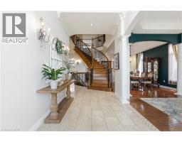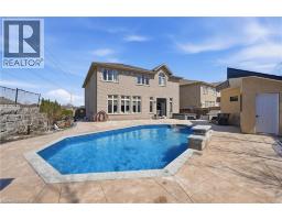Welcome to 240 Cloverleaf Drive in Ancaster, a custom-built executive model home in one of the Meadowlands’ most prestigious streets. The home boasts 3,524 sq ft above grade and a fully finished 1,630 sq ft basement. Sitting on a premium conservation lot with no rear or side neighbours, it offers an unmatched privacy and a serene setting where local wildlife can be enjoyed. A 20-foot grand entrance and spiral staircase with wrought iron spindles welcome you. Travelling through the rest of the home you will enjoy 10-foot ceilings, oversized windows, and an open-concept layout featuring formal living, dining, and family rooms. Throughout the house you will also find coffered ceilings, enhanced by custom millwork, built-ins, and high-end cabinetry. The chef-inspired kitchen boasts granite countertops, stainless steel appliances, and an oversized island. The home offers 4+1 bedrooms and 5 bathrooms, including a primary retreat with his-and-hers sinks, a large glass shower, and double jacuzzi tub. The finished basement features a second kitchen (2024), family room, additional bedroom, and 3-piece bathroom, ideal for extended family or guests. Step outside to a resort-style backyard with a heated saltwater pool (17 x 30 ft, 5 ft deep, 2021), hot tub (2021), dining and lounging areas, cabana-style pool house with bathroom (2022), shed (2022), stamped concrete and landscaping (2023), geo-grid retaining wall (2023), and a new sliding door (2023), all set against a tranquil natural backdrop. Additional upgrades include updated bedroom flooring (2024), main floor pot lights (2024), 200 amp service, carpet-free interiors with hardwood, tile, and luxury vinyl plank, and custom crown moulding. Move-in ready, this home combines elegance, modern upgrades, and exceptional craftsmanship in one of Ancaster’s most coveted neighbourhoods. (id:35360)