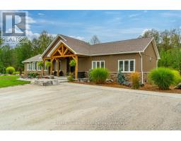 Indulge in Refined Country Living. This stunningly renovated bungalow, set on a private five-acre woodland, offers an unparalleled lifestyle of luxury and tranquility. The gourmet kitchen is a culinary masterpiece, boasting high-end stainless steel appliances and durable, elegant Cambria Quartz countertops. The open-concept layout flows beautifully into a grand living area with a breathtaking 13-foot vaulted ceiling and a striking stone fireplace. Enjoy formal dining with picturesque views. The primary suite is a true oasis, featuring a spa-inspired 4-piece ensuite with a steam shower and heated floors, plus private access to a covered hot tub porch. The finished lower level adds versatile living space with two bedrooms and a bath. A standout feature is the fully insulated and heated 3-bay workshop. Embrace outdoor living with a covered patio, fire pit, and the peaceful presence of local wildlife. Enjoy the best of both worlds: serene country living with easy access to Owen Sound's conveniences and outdoor adventures. (id:35360)