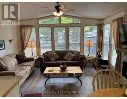 Immaculate, Move-In Ready Cottage in a Resort Setting! Seasonal Cottage - Fully Turn Key! This beautifully maintained three-bedroom seasonal cottage is truly turn key and ready to enjoy! Nestled amid lush greenery within the desirable Wasaga CountryLife Resort, it offers a peaceful retreat with a welcoming porch and vibrant garden. From the moment you arrive, the pride of ownership is unmistakable. It's clean, it smells clean, and the owners' meticulous care is evident in every detail. They have maintained this property to the highest standard, ensuring it remains spotlessly kept, problem-free, and in excellent condition year after year. Inside, the home features a well-organized kitchen with white cabinetry, modern appliances, and a cozy dining area. The inviting living room offers comfortable seating, an electric fireplace, and large windows that fill the space with natural light. The bright sunroom provides a relaxing atmosphere with white wicker furniture, floral cushions, and warm lighting - perfect for unwinding after a day at the beach. The resort offers four outdoor pools, an indoor pool, a recreation center, basketball courts, a bouncy pad, and more - providing endless fun for all ages. Just a five-minute walk leads to the beautiful beaches of Georgian Bay. 2025 Site Fees: $7,025 + HST Sale price includes the 2026 $750.00 site fee deposit. (id:35360)