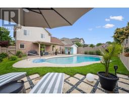 Stylishly Updated for Modern Living! Located in Guelphs sought-after south end, this beautifully upgraded home offers over 3,000 sqft of finished living space, including 3 bedrooms and 4 bathrooms perfect for todays busy family. With undeniable curb appeal, the home welcomes you with a charming covered porch and double-door entry into a bright, inviting foyer. The first floor boasts soaring 9-foot ceilings and hardwood floors, which continue throughout the second level. The formal dining room sets the tone for elegant entertaining, featuring full-height paneling, crown molding, and a striking contemporary chandelier.The heart of the home is the showstopping eat-in kitchen, complete with two-tone cabinetry, quartz countertops, stainless steel appliances, and a sunny breakfast area with walkout to the backyard. A cozy family room anchored by a gas fireplace and custom built-in bookshelves is the perfect space to unwind. Upstairs, rich hardwood flooring continues throughout, leading to the luxurious primary suite with a bay window, walk-in closet, and a spa-like 5-piece ensuite featuring a jetted Jacuzzi tub.The fully finished basement offers exceptional flexibility ideal for a home office, gym, playroom, or guest suite, complete with a full bathroom. Outside, the fully fenced yard is your private retreat, featuring an in-ground pool, mature landscaping, covered patio area, and an insulated pool house with hydro. Recent updates include a new pool liner, cover, heater, and equipment, as well as updated windows, furnace, AC, staircase, flooring, kitchen cabinetry, and much more!Located minutes from schools, parks, amenities, and the 401 this home truly has it all. (id:35360)