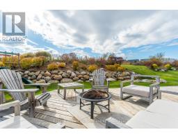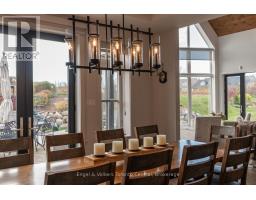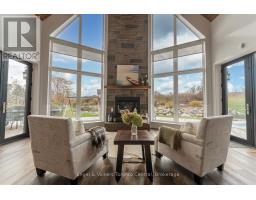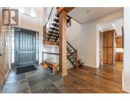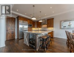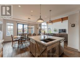 This custom-designed Lora Bay home in The Blue Mountains seamlessly combines contemporary chalet style with eco-conscious materials, like precast concrete and recycled steel, ensuring a low carbon footprint and long-lasting durability. The great room features vaulted ceilings, wood beams, and panoramic golf course views. A modern concrete fireplace adds elegance, and the chef's dream kitchen boasts granite counters, high-end appliances, and a wine fridge. The main floor offers a primary bedroom with a spa-like ensuite, walk-in closet, and a hot tub on the deck. Upstairs, three bedrooms and ensuites provide ample space, and the lower level includes a rec room, two bedrooms, a bathroom, and storage. Outside, an expansive back deck with a hot tub and beautiful landscaping invites relaxation and outdoor enjoyment. (id:35360)