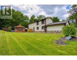 Welcome to 3263 Guyatt Road — a truly unique rural retreat just minutes from the heart of Binbrook. Nestled on a large, private lot with no rear neighbours and no neighbour to one side, this custom home backs directly onto a serene forest, offering ultimate privacy and a peaceful, naturefilled setting. This thoughtfully designed, newly renovated, home features a full bathroom for every bedroom, with three of the four bedrooms offering private ensuites — perfect for families or hosting guests in comfort. The primary suite is a luxurious escape, complete with a private balcony, spa-like ensuite, and a dry sauna for the ultimate in-home relaxation. With two furnaces and two air conditioners, year-round comfort is ensured. 3 fireplaces: gas, electric, and Wood(perfect for winter) will add to the coziness. The home also features a 2-car garage, a large driveway with ample parking, and a stone and stucco exterior that offers timeless curb appeal, and a fully finished basement for entertaining. The backyard is a dream come true for outdoor living. Enjoy a swim in the above-ground pool, relax under the gazebo, retreat to the detached sunroom/shed, or unwind in the hot tub gazebo with an outhouse-style setup — all while surrounded by tranquil green space. Located just a short drive to Binbrook’s town centre, this property offers the best of both worlds: peaceful country living with convenient access to amenities. A rare and special find in one of the area’s most desirable rural pockets. (id:35360)