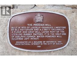 $1,056 MonthlyPublic Remarks: FIRST TIME BUYERS OR SENIORS !! Establish your roots in this spacious 2-bedroom, 2-bathroom condominium located in the historic Phoenix Mill — a beautifully restored limestone building dating back to circa 1870. With only six other units in the building, this unique property offers both privacy and the ease of condominium living in a truly one-of-a-kind heritage setting. This bright main-floor suite features its own private entrance, approximately 980 square feet of living space, 9-foot ceilings with elegant crown molding, large deep-silled windows, and beautiful hardwood flooring throughout. The thoughtful layout includes a generous primary bedroom with double closets and a cheater door to the 4-piece ensuite, which offers a jetted tub and separate shower. The second bedroom is also spacious, with ample natural light and a double closet. A 2-piece guest bath and convenient in-suite laundry complete the floor plan, providing comfort and functionality. Nestled beside Howitt Creek, the Phoenix Mill offers a serene park-like setting surrounded by mature trees and benches, creating a peaceful outdoor retreat just steps from your door. Owners of this building also have access to the amenities at 358 Waterloo Avenue, which include a small fitness centre, party room, and outdoor BBQ and picnic area — perfect for enjoying gatherings with friends and family. This desirable location is directly across from the Speed River and the Royal Recreation Trail System, providing endless opportunities for walking, cycling, and connecting with nature. It’s also within walking distance to downtown Guelph, the River Run Centre, public transit, restaurants, shops, and offers quick highway access for commuters. A rare opportunity to own a piece of Guelph’s history in a heritage building that blends timeless architecture with the conveniences of modern living. (id:35360)