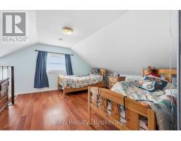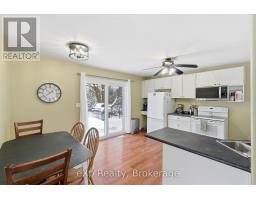 Perfect for young families or first-time buyers! This charming home is nestled in a family friendly neighbourhood. You'll love being just a short walk to schools, the arena, parks, and local sports fields. Inside, the layout is both practical and inviting. The main level features a convenient Bedroom, ideal for parents, guests, or a home office. The bright Dining area opens directly to a beautiful stamped concrete patio through patio doors, the perfect spot for summer barbecues, outdoor dining, or watching the kids play in the yard! Upstairs you'll find a spacious Bedroom along with a versatile bonus room that could easily serve as a nursery, playroom, or quiet workspace. The professionally refinished Mudroom and Laundry area adds thoughtful functionality for busy family life. Outside, the detached garage fits one vehicle and offers excellent additional space with a mezzanine for storage and a 220V plug, ideal for hobbyists or workshop use. A warm and welcoming home in a location families truly appreciate - this is a wonderful opportunity to put down roots and make lasting memories! Updates: AC (2025), Metal roof on house (2025), garage roof (shingle) 2023, all windows and patio door (2024), eavestroughs (2025) laundry room brand new drywall, insulation door and windows (2025). (id:35360)