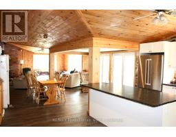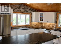 Welcome to this stunning cottage nestled on the shores of Kasshabog Lake. This beautifully appointed island property offers the perfect blend of modern comforts and rustic charm. Bathed in natural light, the open concept sleek freshly updated kitchen, plus living/dining areas create a warm and inviting atmosphere, perfect for entertaining or relaxing. Enjoy a morning coffee or family meal on the deck overlooking the lake. 3 cozy bedrooms offer peace and relaxation after a day out on the water or enjoying the landscaped yard. The sand entry to the lake makes this a great options for those with little ones or grabbing a chair and sitting with your toes in the sand. Outdoor enthusiasts will delight in the abundance of water activities to partake on this family friendly lake. Enjoy the privacy on this half acre waterfront parcel just a short boat ride from the mainland. (id:35360)
