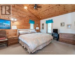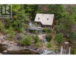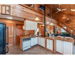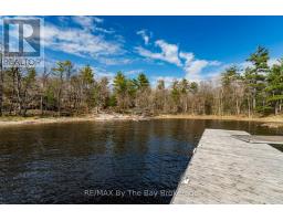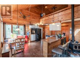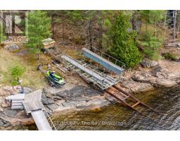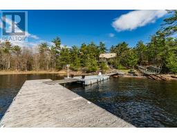 Only a 2 minute boat ride from central Honey Harbour, this Mermaid Island getaway is perched on a large 3.6 acre lot with 571 feet of water frontage. The natural, rocky shoreline slowly gives way to deeper water, allowing for swimming and boating in Georgian Bays pristine waters. Follow the path from the large dock, along the quintessential Canadian Shield landscape to the cozy home/cottage with a cedar deck on the west side, and a composite deck on the east side, both perfect for relaxing and soaking up the sun. Inside, enjoy the open concept layout with vaulted ceilings, wood finishes and plenty of natural light with large windows and a skylight. A free-standing wood stove will keep you cozy on those cooler nights, while the ceiling fans will keep you cool on hotter days. There is plenty of space for family and friends with 2 bedrooms and 1 bathroom on the main floor and 2 additional sleeping quarters with bathroom in the loft. (id:35360)