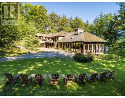 On the coveted shores of Lake Rosseau in Stormy Point, this exceptional waterfront property presents a rare opportunity within one of Muskoka's most exclusive enclaves. Spanning over 2 acres with 433 ft of southwest-facing shoreline, the setting is defined by granite, mature pines, and sweeping sunset views. A sense of arrival is immediate. Upon entry, a dramatic great room unfolds, where vaulted ceilings and expansive windows frame the lake. A striking stone fireplace anchors the space, naturally drawing family and guests together. Flowing from this central space, the adjoining kitchen offers both scale and comfort, with generous prep space, a dining area, and a sitting area centred around its own fireplace. A butler's pantry supports effortless entertaining, while doors from both the kitchen and the great room extend the living area to the porch. Just beyond, the Muskoka room continues the living space, featuring a fireplace and built-in BBQ-an inviting setting for effortless, year-round entertaining. Privately positioned on the main level, the primary suite occupies its own wing with a walk-in closet, ensuite, and direct access to the porch. Above, four additional bedrooms include a guest suite with its own ensuite and a second primary bedroom, offering comfort and flexibility for family and guests. Days unfold effortlessly at the water, swimming, boating across Lake Rosseau, and watching the sun set over the shoreline. A two-storey boathouse extends the experience, offering a private retreat for guests with 1-bedroom, 1-bathroom living accommodations above and an additional bathroom on the main level, perfect for enjoying long afternoons on the upper deck or relaxed days at the dock. There is a quiet ease to life here-morning coffee on the porch, afternoons on the dock, and evenings gathered as the light fades across the lake. Defined by its setting, scale, and enduring appeal, this is a property to be held and enjoyed for generations. (id:35360)