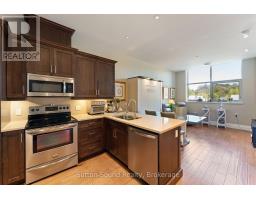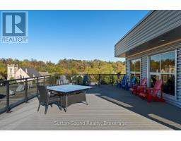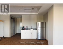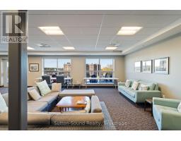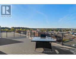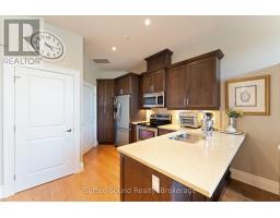 $251.06 MonthlyLuxury Downtown Living in Owen SoundIf youre looking for elegant, maintenance-free living in the heart of downtown Owen Sound, this stunning condominium is not to be missed. Offering exceptional quality with very reasonable condo fees, this unit showcases sophisticated design and thoughtful details throughout.Step inside to discover nine-foot ceilings, rich hardwood flooring, refined trim work, and a custom kitchen featuring quartz countertops and stainless steel appliances. The spacious suite includes in-suite laundry, wide 36-inch door openings, premium finishes, and a beautifully appointed bathroom with ceramic tile flooring.Enjoy an impressive list of amenities including designated parking, a large storage locker, a stylish party room with pool table and big-screen TV, a modern fitness centre, and an expansive rooftop terrace complete with three natural gas BBQs and multiple gathering spaces perfect for entertaining or unwinding with a view.Additional features include a high-efficiency natural gas furnace, air conditioning, a Heat Recovery Ventilator (HRV), and a rental natural gas hot water tank. Water and sewer are included in the condo fees for added convenience.Experience the best of urban living in this well-appointed, move-in-ready suite. Book your private showing with your REALTOR today! (id:35360)