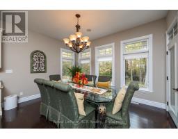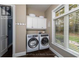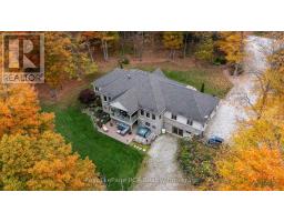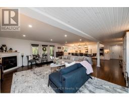Luxury meets country in this one of a kind brick bungalow situated on just under 2 acres. With almost 5000 sq ft of living space, this home has a lot to offer! The open concept main floor includes the living room with a propane fireplace, built in shelving and a double door walk out to the covered porch. There is an ample sized kitchen and dining area with nice finishes, plenty of cupboard space and a walk out to the covered deck. The master bedroom has nice views from the windows, an electric fireplace for those cozy nights, a walk out to the covered porch. Spacious 5pc ensuite and large walk in closet to finish it off. Two more bedrooms, a 4pc, powder room and mudroom with laundry complete the main floor. The lower level has recently been fully renovated featuring a brand new chef's kitchen with top of the line built-in Thermador appliances, custom cabinetry and a spacious island. There are two full bathrooms, one 4pc including a soaker tub and matching vanity and make up station, and the other 3pc with a large custom made walk in shower and vanity. The two bedrooms feature custom closet organizers and cabinetry. Along with a pantry and an office, the lower level also features a living room with a propane fireplace and walk out to the covered patio complete with a hot tub! The home has a 2 car attached garage on the main level and a bonus underground garage space utilized as a gym. The lot is nicely landscaped and with an efficient geothermal heating and cooling system, there's nothing left to do but move in! (id:35360)