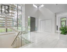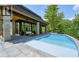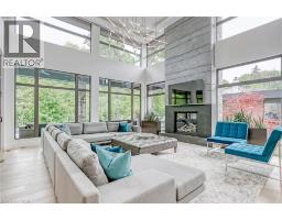 With a stunning backyard, 5,196 sq ft of above ground living, and quality construction built by Gatestone Homes, this home is truly the total package. Stone, wood, and striking Anderson windows have been eloquently incorporated on the exterior of the home, lending to the superb curb appeal. The thoughtful design fuses modern style with timeless elegance. The foyer of the home feels as though you are entering a luxury hotel, with a stunning floating staircase and a custom hanging light feature that is a piece of art in itself! The soaring two-storey foyer is flooded with natural light from oversized windows, creating a bright and welcoming space. A custom wooden piece subtly divides the foyer from the traditional dining room that is complete with a temperature-controlled wine room and glass doors that invite you to enjoy the expansive rear deck. The heart of the home is the open concept kitchen-family-dining space that is surrounded by windows and grounded by a beautiful gas fireplace. With an oversized island there is no shortage of space for you and your guests. Adjacent to the kitchen is a conveniently located powder room as well as a laundry/mudroom that can be concealed by a pocket door. The primary suite is a true oasis. With double door entry, a gas fireplace, and five-piece ensuite, no detail was overlooked. The three additional bedrooms all have ensuite access and walk-in closets. Completing this level is a laundry room and study area with built-in desk space. The 2,712 sq ft lower-level walk-up will not disappoint. The large recreation space features a built-in projector, billiards space, and wet bar. A home gym and two additional bedrooms as well as playroom/second home office finish off this space. Lush mature trees combined with meticulous landscaping will lure you to the rear yard. With approx. 1800 sq ft of outside living space, a gunite pool, and cabana, this backyard checks all the boxes! Enjoy the beautiful summer weather in this retreat-like home! (id:35360)