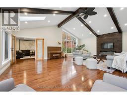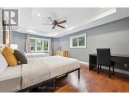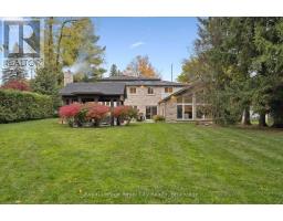 Tucked away on over an acre of peaceful, tree-lined property, this thoughtfully designed multi-level home offers a rare blend of space, style, and soul. From its inviting front porch to the rustic entertaining space out back, every inch of this 5-bedroom, 3-bathroom property invites connection with family, friends, and the natural beauty that surrounds it. Upon entrance, you will quickly fall in love with the open-concept design, enhanced by gleaming hardwood flooring. The chef-inspired kitchen showcases sleek Corian countertops, custom cabinetry, and a functional island that flows perfectly into the combined living/dining room, creating an elegant space for entertaining. A sizable main floor bedroom is ideal for guests or a home office, while a well-equipped mudroom supports busy family living. Descend to the show-stopping lower-level family room, anchored by an attractive fireplace, and flaunting vaulted ceilings, engineered hardwood, skylights, and floor-to-ceiling windows capturing breathtaking backyard views. The adjoining games/rec area is designed for fun and function, complete with heated floors, backyard access, and a modern 3pc bathroom. Upstairs, the 2nd level provides 2 generous bedrooms and a loft space, perfect for a reading nook or study, alongside an updated 4pc bathroom. The private, 3rd level offers a primary suite with a walk-in closet and a 5pc ensuite, as well as a 5th spacious bedroom. The finished basement extends a versatile living or recreational space, complemented by a dedicated laundry room and storage/utility room. Step outside and prepare to be captivated: a 2-tier stone patio frames alfresco dining and a rejuvenating hot tub area, while the rustic post-and-beam gazebo with a striking stone fireplace promises memorable evenings under the stars. Surrounded by mature trees and lush green space, this property evokes the feel of a private resort retreat- just minutes from essential amenities and ready to welcome your next chapter. (id:35360)