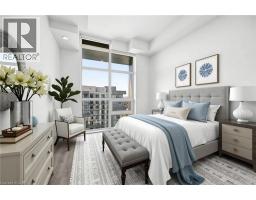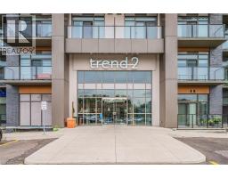 $352.44 MonthlyExperience elevated living in this stunning penthouse retreat perched on the top floor, offering 638 square feet of thoughtfully designed space. This 1 bedroom plus den residence impresses with soaring 10-ft ceilings and an abundance of natural light streaming through floor-to-ceiling windows. Step out to your private balcony and take in sweeping southwest panoramic views over the east end of Waterdown-the perfect backdrop for morning coffee or evening sunsets. The suite is loaded with quality upgrades, including custom navy cabinetry, gleaming white quartz countertops with an extended breakfast bar, upscale stainless steel appliances, a timeless subway tile backsplash, and top-of-the-line vinyl flooring that blends durability with contemporary style. Residents enjoy exceptional building amenities, including a rooftop terrace with BBQ, stylish party room, fully equipped gym, and convenient bicycle storage locker. Geothermal heating/cooling ensures energy efficiency and low utility costs year-round. Complete with 1 underground parking space and 1 storage locker, this residence offers comfort, convenience, and sophistication. This is more than a home-it's a lifestyle at the top, where modern design, smart efficiency, and breathtaking views come together seamlessly. (id:35360)