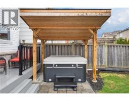 Opportunity to own a LINK home in Alton Village. This bright, spacious home is well located steps to Appleby shopping and the 407, but is located on a quiet, family focussed street. Enjoy a spacious foyer with tile floors and double closet, as well as a front door powder room with pedestal vanity for guests and kids playing outside. The main floor features new carpet in the formal living room with a gas fireplace and overhead lighting. The eat in kitchen spans the width of the home with stainless appliances, stone counters, and patio access to the backyard including a gas line bbq! The bedroom level of this home is over 700sf and showcases new, quality carpet, upgraded window coverings, 2 generous bedrooms and a massive primary suite. Room to unwind at the back of the house with an incredible main bedroom including a walk in closet and 4 piece ensuite with soaker tub. The fully finished basement creates a cozy hangout space with electric fireplace and an upgraded 2 piece bath. Spend your summer out back on the new composite deck, or in the professionally installed hot tub with a custom pergola so you can enjoy in any weather! Updated roof 2025, AC 2023, stacked laundry, automatic garage door opener. Includes new shed, 3 fireplaces, massive hallway mirror, owned on demand water tank! (id:35360)