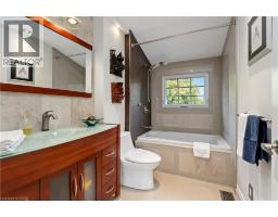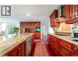 Luxury Living on the Niagara Escarpment - over 1 Acre with Creek & Seasonal lake view and waterfall Nestled in the heart of Niagara's Escarpment, this exceptional residence offers more than 2,500 sq. ft. of elegantly upgraded living space on a private, park-like setting of over one acre. The property is enhanced by the natural beauty of 30 Miles Creek meandering through the grounds and a picturesque seasonal waterfall, creating a tranquil retreat just minutes from the QEW, town amenities, and award-winning wineries such as Peninsula Ridge. Inside, refined details and upscale finishes set the tone for sophisticated living. The chef's kitchen features professional-grade appliances, granite counter-tops, a grand island, and custom maple cabinetry—perfect for both entertaining and family gatherings. The panoramic family room windows frame sweeping views of the ravine, lush greenery, and adjacent Bruce Trail conservation lands, bringing nature indoors. The home includes 3 spacious bedrooms and 3 full bathrooms, highlighted by a stunning primary ensuite with an oversized picture window, modern soaker tub, waterfall shower, and double vanity. A wine cellar, 2 built in speakers, heat pump, fireplace, and independent water system with purification add comfort and luxury. Outdoor living is equally impressive with two expansive decks, one overlooking the ravine and creek, plus a stone observation patio and rock garden with a charming pathway leading to the falls. The professionally landscaped grounds provide both privacy and natural beauty, making this an ideal haven for nature enthusiasts and wine lovers alike. Whether envisioned as a distinguished private residence or a boutique B&B/RB&B, this property offers a rare opportunity to enjoy the very best of Niagara living—serenity and sophistication. Luxury Certified. (id:35360)