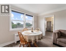 $568 MonthlyCharming, turn-key 1 bed, 1 bath unit in desired, well maintained and affordable East Brow Co-operative. This unit has undergone extensive updates including a lovely kitchen featuring white cabinetry w/ crown moulding, corian counters, built-in pantry/display cabinet, included stainless steel whirlpool fridge and stove. Updated toilet and vanity in bathroom. Durable and attractive vinyl plank flooring throughout unit. Electrical updated to breakers. Charming archways and coved ceilings in open living room/dining room. Lots of closet space, and additional storage included with exclusive use locker(in basement). Enjoy the quiet rear of the building location of this unit with views of quaint and mature neighbourhood. Wander out front of the building to take in the east Hamilton escarpment views. Walk to great restaurants and shops on Concession. Easy access to trails, transit, airport and Juravinski Hospital. Co-op fees $568 monthly includes: property taxes, parking, heat, water and exterior maintenance. Hydro is owner’s responsibility. Pets are welcome with some restrictions. (id:35360)